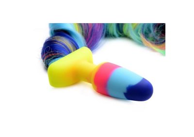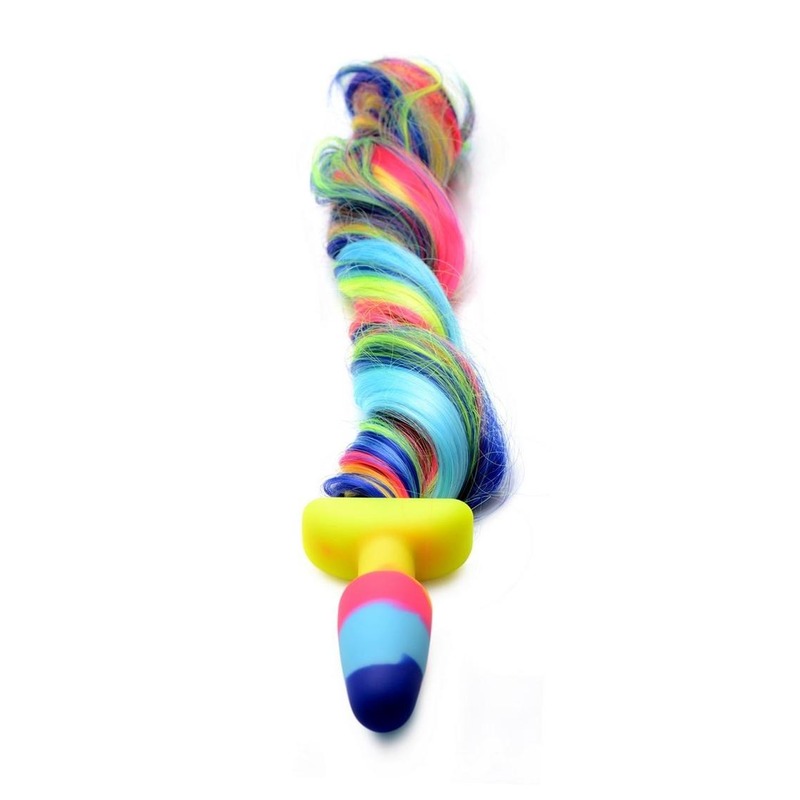 Awaken your inner Unicorn with this gorgeous Rainbow Unicorn Tail Anal Plug! The long and lavish tail has an enthralling rainbow texture sure to catch the eye of your partner or your audience. The long length allows for braiding and other fun hair styles for you to play with! Perfect for role play in the bedroom.